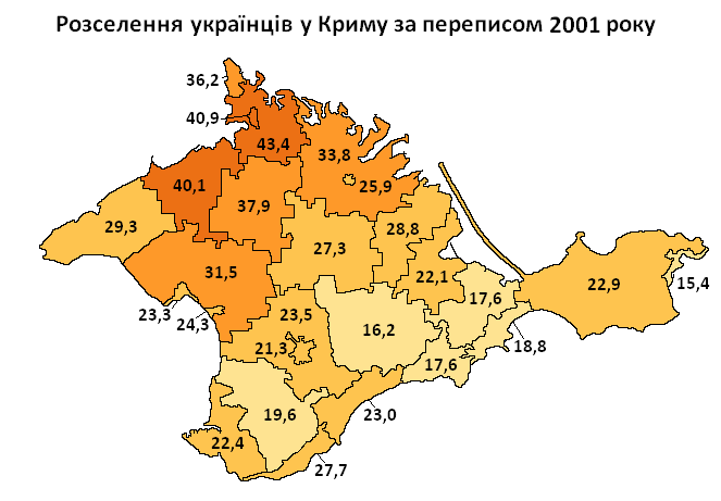 Навіть якщо спиратися на дані проведеного восени 2014 року на окупованому півострові перепису нових російських підданих, цілком можливо довести, що разом моноетнічних і двоетнічних українців у Криму приблизно від сорока відсотків до половини. Але то всього-на-всього арифметика. У житті все складніше.