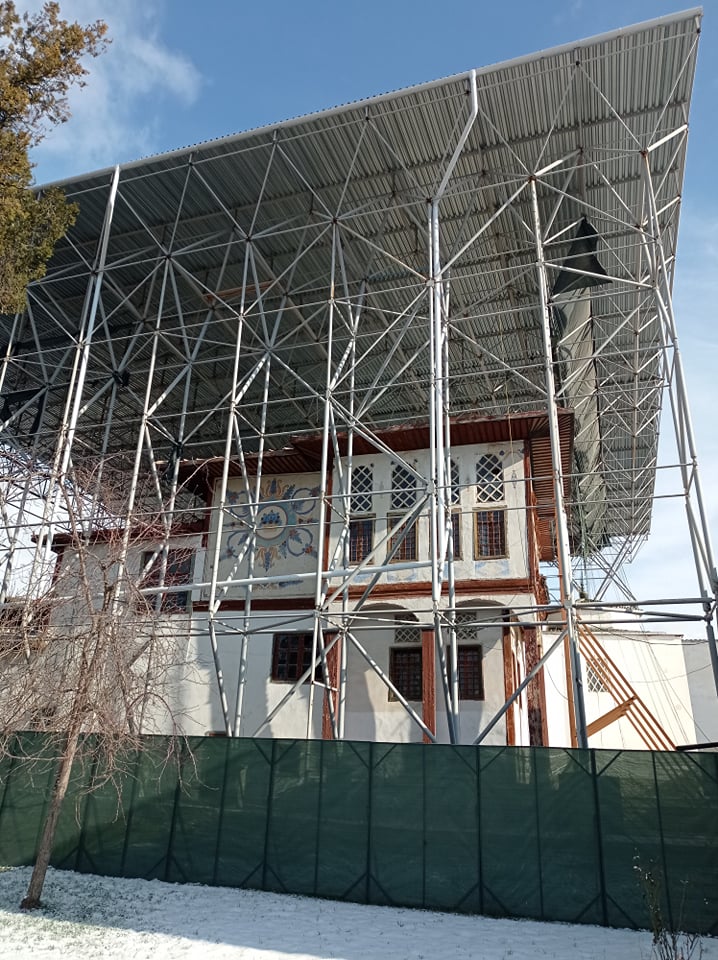 У середині грудня 2021 року для представників кримських ЗМІ, підконтрольних окупантам було проведено «прес-тур» задля ознайомлення з перебігом «ремонтно-реставраційних заходів» на комплексі Ханського палацу, що є єдиним у світі взірцем кримськотатарської палацової архітектури і наразі перебуває під контролем «державної бюджетної установи РК «Бахчисарайський історико-культурний і археологічний музей-заповідник» (далі у тексті «заповідник») у статусі «об’єкта культурної спадщини федерального значення»). Коментарі та пояснення журналістам давали керівник «дирекції» Ілля Алимчев, «завідувач відділу «Музей історії та культури кримських татар» (є складовою частиною «заповідника» Мер’єм Сейтумерова, «декан історичного факультету Кримського федерального університету («КФУ») ім. В.І. Вернадського» Олександр Герцен, що є керівником «археологічної експедиції», яка працює на Ханському палаці, та представники підрядних організацій. Було оголошено, що незаконні роботи на комплексі, на проведення яких було передбачено надання майже двох мільярдів рублів з бюджету держави-окупанта, відповідно до затвердженого плану-графіка реалізації «федеральної цільової програми «Соціально-економічний розвиток республіки Крим та міста Севастополя до 2025 року» мають бути завершені наприкінці 2023 року; станом на грудень 2021 року вони були виконані на 30% від загального обсягу з освоєнням близько 400 млн рублів. У прес-релізі було оголошено, що «масштабна повна реставрація» комплексу проводиться вперше, тож «доволі важливо відновити і зберегти впізнаваний історичний вигляд, автентичність архітектури, елементів внутрішнього оздоблення та декору». Серед іншого було повідомлено про «повну реконструкцію» трьох із шістнадцяти об’єктів комплексу – дюрбе (гробниць) Діляра-Бікеч, Північного та Південного. В той же час активні «ремонтно-реставраційні заходи» проводилися як на вже згаданій набережній з трьома мостами, так і на корпусі стаєнь, бібліотечному корпусі, Соколиній вежі, надгробній ротонді та хамамі (лазні) Сари Ґюзель. На етапі «підготовчих робіт» перебували ще два об’єкти – Ханська кухня та Графський корпус, який у російських джерелах помилково іменується як «светский» (світський), тоді як точне його найменування – «свитский», тобто корпус почту. На 2022 рік планувалося укладення «контрактів» на проведення «ремонтно-реставраційних робіт» на п’яти об’єктах – «Сади та паркові споруди», «Ханська мечеть» (II етап), «Катерининська миля», «Головний корпус» і «Гарем»; за двома останніми об’єктами були укладені «контракти» на розробку «науково-проектної документації».
