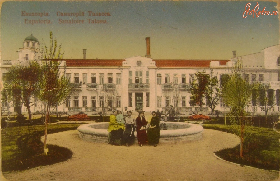 У путівнику по Євпаторії, виданий у 1914 р., зазначалося: “Санаторія обладнана за останнім словом медицини й техніки. Знаходиться на березі моря в дачному районі. Величезний будинок, парк; пил, завдяки положенню, відсутній. При лікарні є 50 світлих кімнат (передпокій, балкон або тераса) і, крім того, загальна їдальня, читальня, більярдна і фотографічна кімната. У санаторії “Таласса” користуються для лікування усіма природними багатствами Євпаторії, і приймаються до неї не тільки особи хворі, а й просто перевтомлені, які потребують відпочинку й відновлення сил. Стіл для хворих – дієтичний, і звертається на нього особливу увагу. Плата з осіб, що живуть у санаторії, стягується в розмірі від 5 до 10 крб. на день за кімнату з повним утриманням та лікуванням. Напівпансіонери, що користуються столом і лікуванням у санаторії, але живуть на приватних квартирах, сплачують 4 крб. 50 к. на день. Діти до восьми років сплачують половину”.