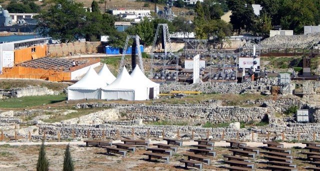 Під час підготовки до розважального заходу було викинуто як сміття середньовічні арочні камені та античну колону, комунікації прокладалися на залишках археологічних об’єктів, будівництво велося там, де ще не завершено дослідницькі та реставраційні роботи, важка техніка рухалася по культурному шару та нерозкопаній частині городища.