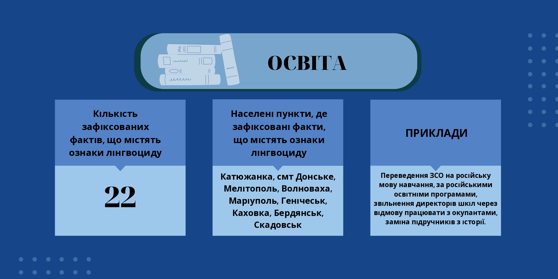 Джерело: «Російська політика лінгвоциду на окупованих територіях України як спосіб демонтажу конституційного ладу України та елемент геноциду проти українського народу», https://mova-ombudsman.gov.ua/news/rosijska-politika-lingvocidu-na-okupovanih-teritoriyah-ukrayini-yak-sposib-demontazhu-konstitucijnogo-ladu-ukrayini-ta-element-genocidu-proti-ukrayinskogo-narodu