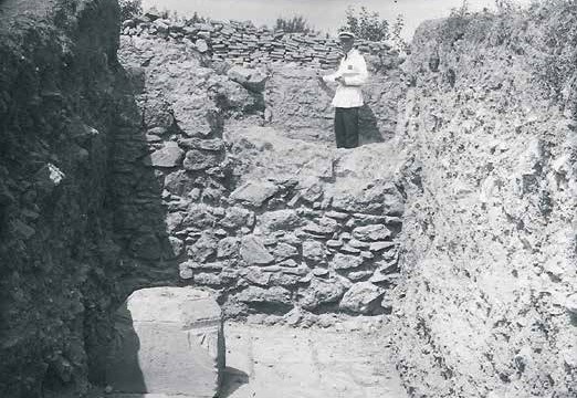 Археологічні траншеї на розкопках медресе. Старий Крим. 1925 р. Праворуч – П. І. Голландський.